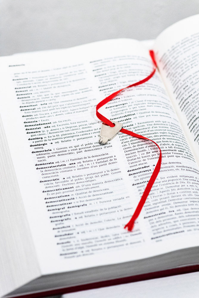 Material: Catalan monolingual dictionary, noticeboard display with lock and key, staples.