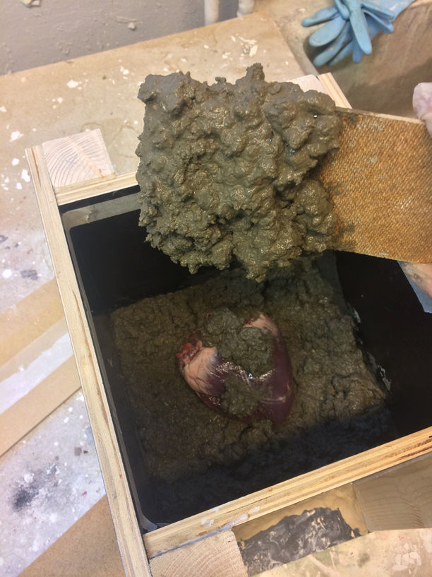 During the performance, I carried a heart in a transparent plastic bag in my everyday life: 24 hours a day for 4 days. After those days, when it was clear that the relationship was over, I needed closure. To protect and isolate myself; I buried the heart in a concrete cube.